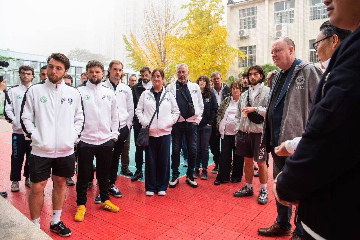 杀青上昼的走访行径后,英国斯托克波特业余足球俱乐部(Stockport AFC)一滑来到帆海畅通场,与正在践诺的河南杜康一线队合影眷恋,之后与华夏区代表交换礼物,并与河南业余足球队进行友好疏通比赛。