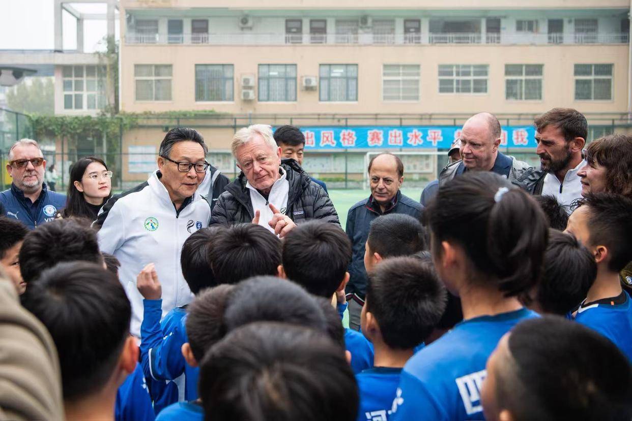疏通行径之前,郑开赴小学校长周永涛向客东说念主系统先容了学校足球职业的发展经由。郑开赴小学自1974年在韩振国校长松手相沿下组建足球队以来,历经13任校长竭力鼓动、三代西宾信守捏教,恒久以“为国育才”为足球栽植中枢方针。2024年恰逢球队建队50周年,校男人足球队在这一里程碑时间冲破“省长杯”开赛以来的决赛收获记载,以全胜战绩斩获该赛事小学男人组冠军,为50周年队庆献上重磅贺礼;半个世纪里,球队不仅在各级各种比赛中屡获盛誉,更培养出26位国字号球员,以及多名以足球高水平畅通员身份考入国度重心高档学府的优秀学子,纯真讲明了学校“以球育东说念主”的丰硕截至。随后,周校长指导客东说念主参不雅校园足球明星墙,一一先容从学校走出的足球东说念主才功绩,让客东说念主直不雅感受郑上足球50年的传承与光泽。